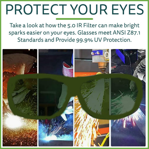 Cordova EJBIRUV5 Retriever Welder's Glasses, Black Frame, 5.0 IR Green Lens
